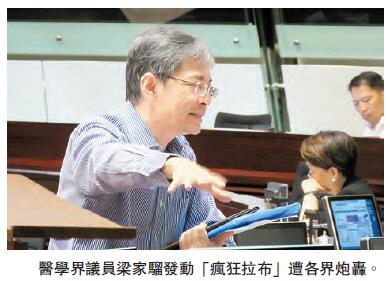 【香港商报网讯】记者戴合声、林骏强报道:立法会昨日继续审议《2016年医生注册(修订)条例草案》,表明反对草案的医学界议员梁家骝昨早於大会开始处理各项质询时即发动「疯狂拉布」,全日不停要求点算人数逾20次,浪费会议逾4小时。政务司司长林郑月娥批评梁家骝手法粗暴,重申政府不会调动议程。食物及卫生局局长高永文则担心今届会期未能通过草案。建制派及泛民都不齿梁家骝粗暴「拉布」,就连民主党主席刘慧卿更公开表示:「自己是25年来第一次哀求别人」,呼吁梁家骝尽快停止「拉布」,放过议员、放过香港,让立法会能继续审议草案。会议今早会续会。