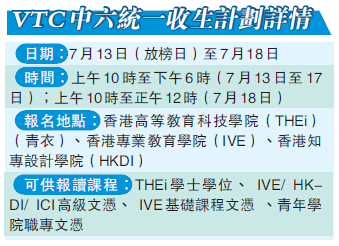VTC在放榜當日,會有「統一收生計劃」,學生可以即場報讀課程。任影嬋表示,盡量會即時告知學生取錄與否,又表示收生有四大因素,分別是成績、報讀課程、面試表現,以及相關的經驗。