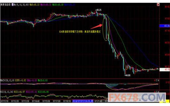 在美國能源資料協會(EIA)公布上周美國原油庫存減少220萬桶,略低于路透訪查分析師預估的230萬桶后,油價跌穿支撐位。