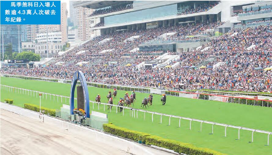 【香港商报网讯】记者万家成报道:马季煞科日昨日顺利完成全日共11场赛事,沙田及跑马地马场全日入场合共45783人次,打破去年煞科日4.2万人入场的数字,而昨日全日总投注额达港币18.36亿元,是1997年以来煞科日新高,同时亦打破10年来单日最高投注额纪录。不过,累计本年度总投注额约为1061亿元,却较上年度下跌了1.7%,未能承接连升7个马季的纪录。