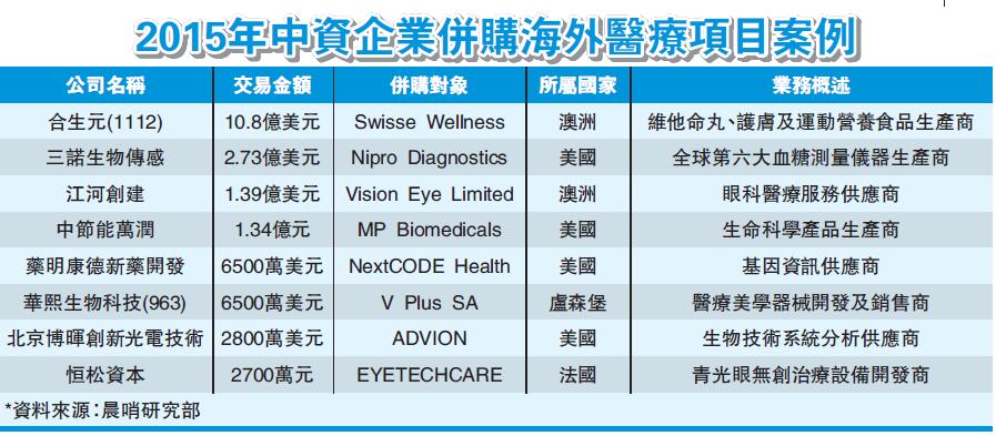 中资动用千亿元倂购海外医疗产业