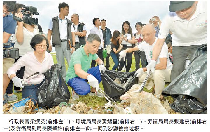 CY又说,近日有社会团体自发帮忙清理海上垃圾,他深受感动,期望其他市民可帮手,而多名官员今次亦响应清理垃圾,反映特区团队齐心解决共同面对问题,并发出信息,每个人都有份参与保护海岸等环保工作。