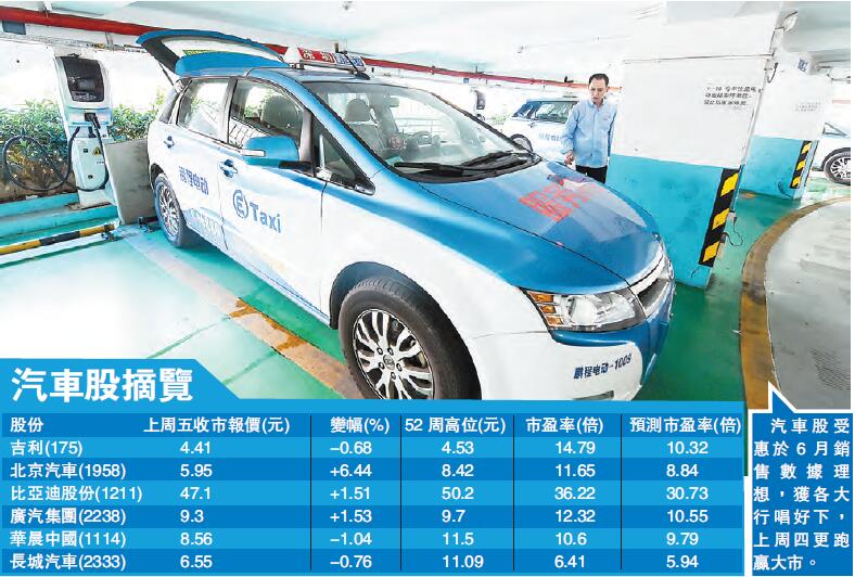 大市欠缺方向,只好轮流炒消息。其中,汽车股受惠於6月销售数据理想,获各大行唱好下,上周四更跑赢大市。多只汽车股,若想作中短线持有,吉利(175)、北汽(1958)可留意。香港商报记者林德芬