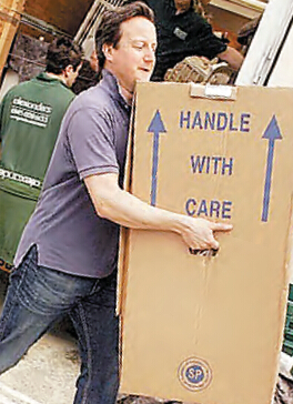 網上流傳一張卡梅倫搬離唐寧街時親自搬箱子的照片,隨即引起瘋傳。網絡圖片