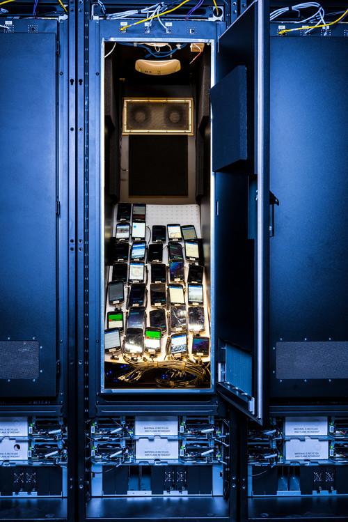 后來,Facebook在上述數據中心定制了60多個機柜,每一個機柜放置了32部智能手機。