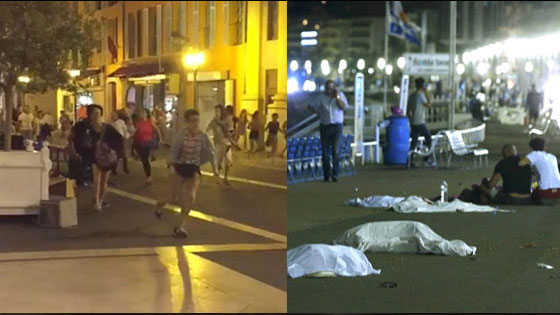 法国尼斯袭击现场 群众飞奔躲卡车