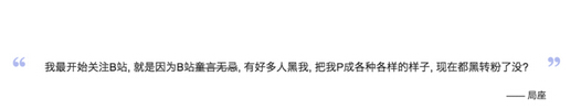 局座的個人魅力是他圈粉的原因,他沒有架子、平易近人、對年輕人的生活充滿好奇心和包容,兩小時的直播毫無冷場、各種時事新聞、小故事信手拈來,面對B站的小朋友不時表現出一種作為長者的慈祥和責任感。