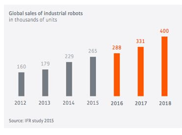 全球工業機器人銷量及預測
