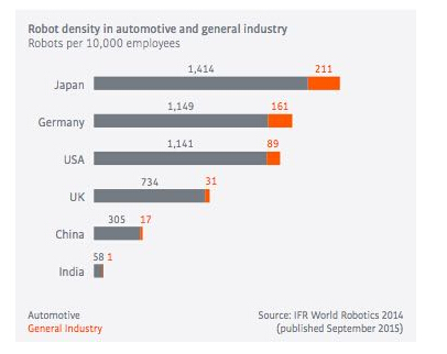 全球各地機器人使用情況