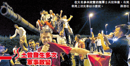 【香港商報網訊】土耳其當地時間15日晚發生軍事政變,發動政變的軍人更一度發表聲明稱,土國會由「和平委員會」接管,並即時實施宵禁。不過到16日,原本在南部度假的土總統埃爾多安現身第二大城市伊斯坦布爾,指政變僅「軍中的一小撮人」發動,國家仍由他掌權。截至香港時間昨晚消息,土政府已拘捕了一千多名軍人,約190多人在政變中喪生,其中有為數不少的平民。