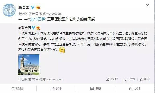 聯合國官方微博13日也發布聲明稱,常設仲裁法院與聯合國沒有任何關系。