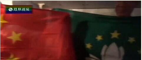 保釣人士在船艙內展示國旗及澳門特區區旗(視頻截圖)