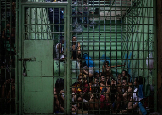 馬尼拉的一座監獄內,向警方自首的癮君子或毒販被關在一起