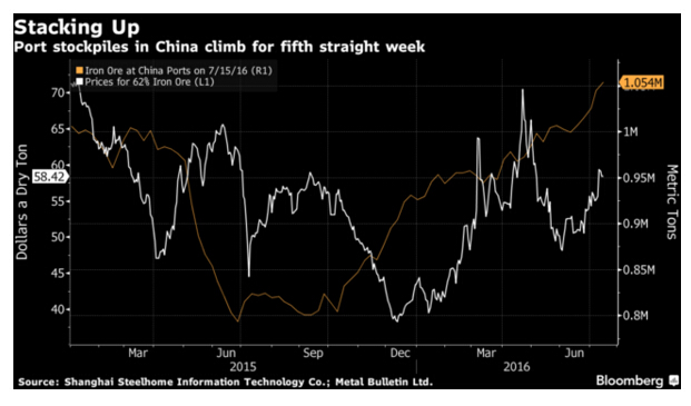 庫存大增表明穩健的供應,而包括麥格理在內的銀行都在本月警告稱,今年大漲34%后鐵礦石價格可能會走低。
