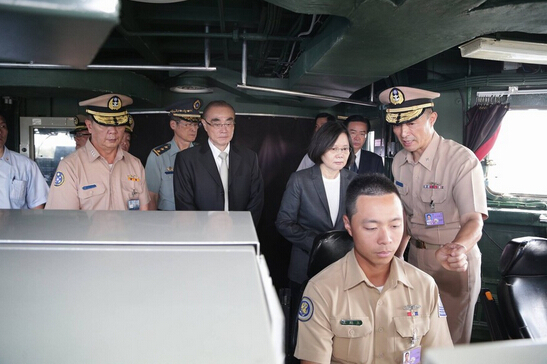 7月13日,蔡英文登上即將赴南海巡邏軍艦