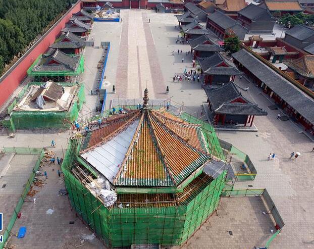 日前,沈陽故宮啟動大政殿、左翼王亭、鑲黃旗亭和正白旗亭等古建的修繕工程。據了解,此次修繕主要對古建的瓦頂、牆體等進行修繕,修繕按照修舊如舊的原則,預計9月下旬完工。