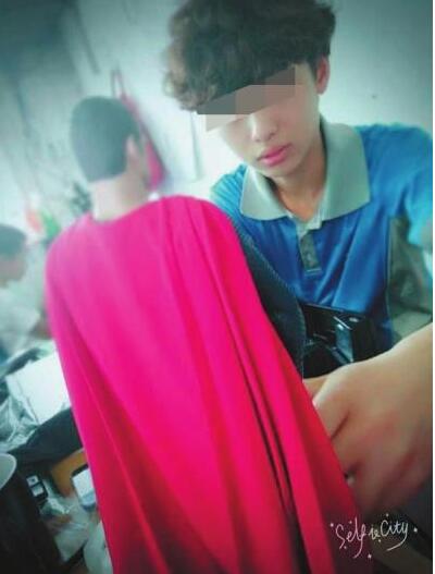 涉事快递员在朋友圈晒其与超人玩偶合影。 赵先生供图
