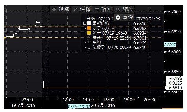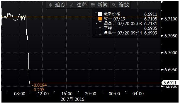 今日人民幣中間價上調25點,報6.6946元,昨日中間價報6.6971元,16:30收盤報6.6893元,23:30收盤報6.6970元。