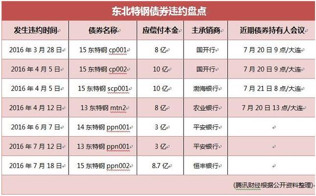 2016年7月20日上午9点东北特钢“15东特钢CP001、CP002、CP003”三期债券持有人会议在辽宁大连心悦大酒店举行,会议由主承销商国开行和招商银行共同召集。公告议题是《关于要求东北特钢披露2015年财务报告、2016年一季度财务报告;以及最新的资产受限、抵质押、冻结、诉讼等相关情况的议案》等相关议案。