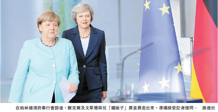 【香港商報網訊】英國新任女首相文翠珊當地時間20日開啟對德國的訪問行程,與該國總理默克爾探討「歐洲前程」。德國《焦點》周刊指出,兩位「鐵娘子」的「首次約會」互表善意,但盡管二人談笑風生,在英國脫歐的表態上仍然分歧明顯。文翠珊一再強調脫歐需要時間,且英國不會在今年內開啟正式脫歐程序,默克爾則重申英國須明確未來與歐盟其他27個成員國的關系。