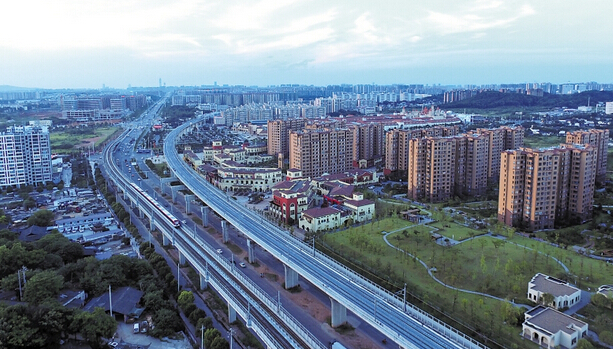 星城之南,長株潭城際鐵路和長沙地鐵1號線高架橋并駕齊驅,成為一道靚麗風景。