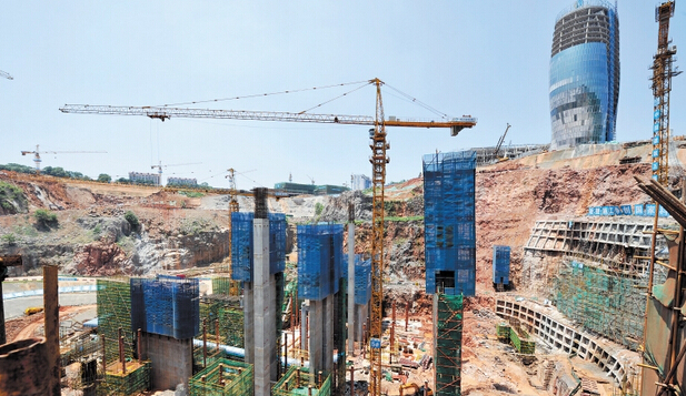 湘江歡樂城冰雪世界項目48根墩柱已初具規模,一側的坑壁支護施工已部分完成。