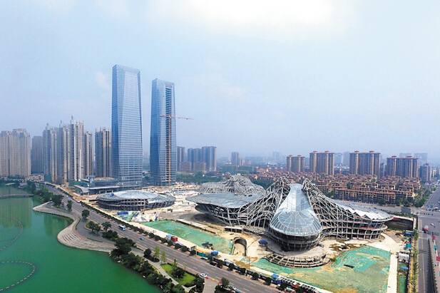在瀏陽河畔長沙國際會展中心,8棟大型展館已露出芳容,10月份長沙市民在家門口也能參觀大型國際展覽;