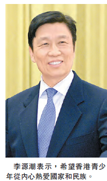 【香港商報網訊】記者萬家成報道:國家副主席李源潮昨日在北京會見了香港女童軍總會百年會慶暨制服團體「同心同根萬里行」交流團。李源潮表示,香港回歸19年的實踐證明,「一國兩制」和基本法得到了包括香港同胞在內的全國人民的普遍擁護和國際社會的廣泛讚譽,希望香港青少年繼承中華民族愛國傳統,從內心熱愛我們的國家和民族;全面準確理解「一國兩制」,積極維護香港繁榮穩定;把握時代機遇,奮力開創香港美好未來。