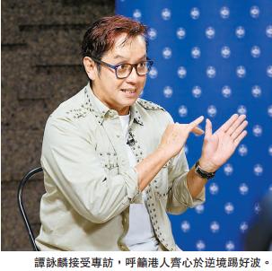 近年本港在施政上因種種原因,不少措施遲遲未能推行,加上港人對社會民生事務愈來愈關注,令社會充斥負能量,尤其年輕人,怨氣沖天。譚詠麟說,往前看是好,但有時也不妨「望轉頭」:「我爸爸那一代,六、七十年代,無人看得這樣灰,看到這樣downside(負面)。政府應該做多一點,國家觀念也好,香港人觀念也好,很多事不能硬來,但很多事也不能不做。」