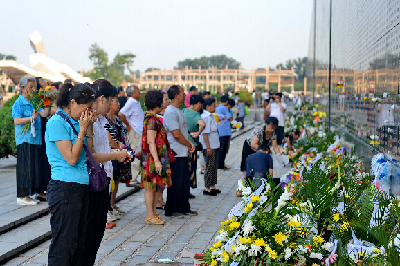 当日是河北唐山大地震40周年纪念日,市民来到唐山大地震纪念墙前,祭奠在1976年7月28日唐山大地震中遇难的亲人。