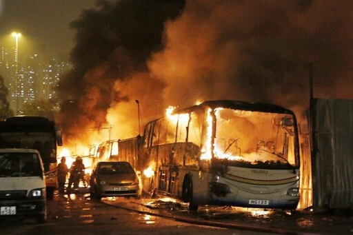 发生在荔枝角一露天停车场的人为纵火案。资料照