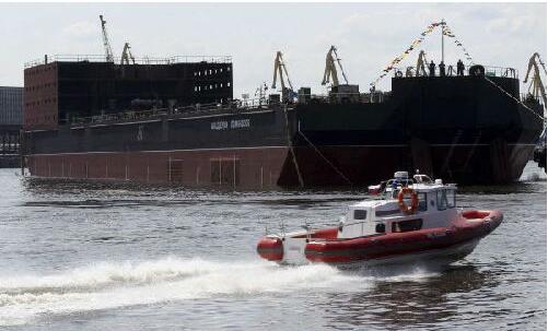资料图片:2010年6月30日,俄罗斯圣彼得堡拍摄的水上浮动核电站。(新华社发)