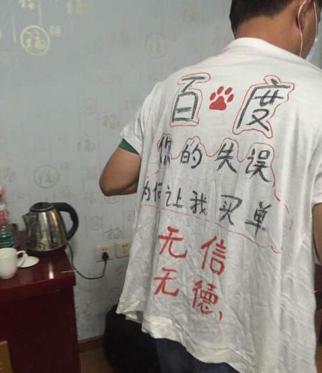 8月3日,據媒體報道,代運營商們開始找來白T恤、白襯衫或者白浴巾,用馬克筆醒目地寫上“百度無恥”、“百度欺詐”和“百度還錢”等,前往百度門前抗議。當日氣溫一度高達36度,這些運營商先是圍繞百度園區內抗議,其後在飯點時前往超市、飯店和地鐵站等,以吸引更大的關注。他們甚至要求前去采訪的新浪科技記者為他們拍一張面向百度大廈跪下的照片,露出後背上的抗議文字。