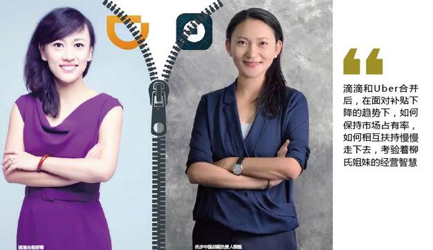 在很多人看來,堂姐妹之間的關系一定是親如閨蜜,而這對柳氏姐妹,一位是滴滴的“二把手”、一位是優步中國的“一姐”,她們在過去一年時間裏,每天都鬥得死去活來、隔空喊話,火藥味十足。此前滴滴和Uber的競爭在某種程度上也被看作是柳氏姐妹的對決。如今,滴滴和Uber已合並,在這場中外資本“押注賽”裏一個看點,依然是柳氏姐妹之間的博弈。