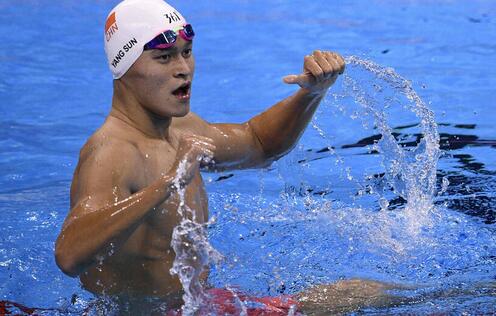 孙杨获得冠军!南非选手勒克洛斯第2,美国选手戴尔第3。