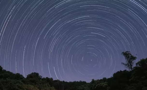用脚架固定相机,把镜头朝向北极,长时间曝光,便能拍下圆形光纹的星流迹。