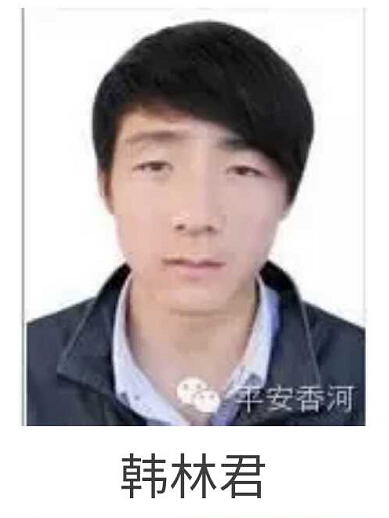 2.韓林君,男,1994年11月24日出生,身份證號碼622821199411241014,甘肅省慶城縣三十裏鋪鎮韓灣村韓灣組人。在逃人員編號T1310240050042016080021。