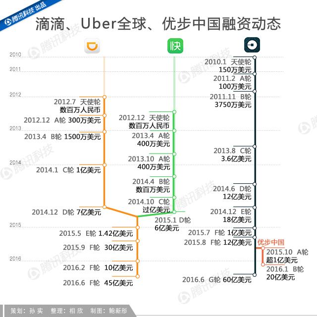 但是一切都太晚了。滴滴開啟了更加兇猛的融資。在完成2015年的30億美元融資后,滴滴于2016年2月又融資10億美元;6月再度完成45億美元的股權融資,新投資方甚至包括蘋果公司。