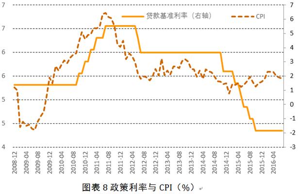 根據經驗,CPI拐點形成后的6個月內貨幣政策開始轉向,升息(或降息)周期持續數月至一年(圖8)。當CPI上行一段時間后,貨幣政策收緊,信貸增量收縮,房地產銷售量和價格下跌,房地產投資下滑,對經濟增長造成壓力,物價增速放緩(甚至通縮),然后引發另一輪貨幣政策寬松。總體來說,2006年以來的四輪房地產周期的背后是信貸周期。