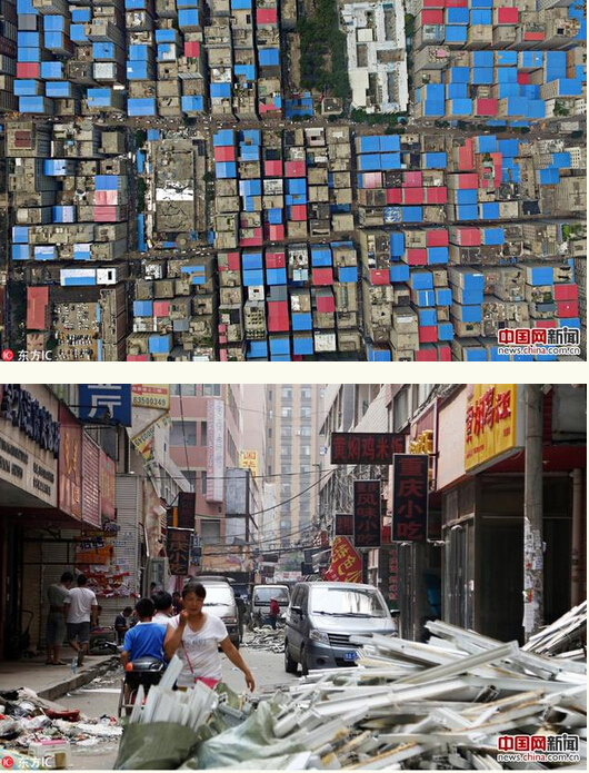 據中國網8月25日報道,8月24日,河南鄭州市的最大城中村陳寨即將開拆。從空中看陳寨,樓房櫛比鱗次,大部分樓房房頂,全部是藍色或紅色的彩鋼瓦。