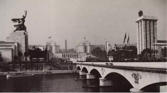 在1937年的巴黎世博會上,蘇聯館和德國(納粹)館在塞納河邊遙遙相對,其鮮明的形象分別代表著不同的國家意識形態的對立。這一景象可以看成是二十世紀以來用公共藝術來實現國家意識形態的典型例子。