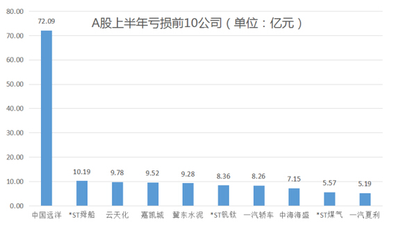 在中國遠洋披露中報前,A股上半年虧損前3的公司分別為*ST舜船(虧損10.2億元)、云天化(虧損9.78億元)、嘉凱城(9.52億元)——中國遠洋直接將虧損王的標準提高了6倍!