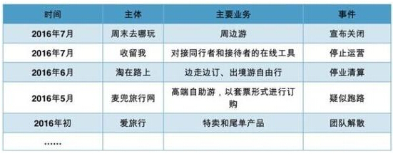 除此之外,據媒體報道,旅付通、拒宅網、腳丫旅游網、找好玩、周五旅游網、徒步狗旅行、哪旅游網等一大波在線旅游創業項目也已宣告死亡。