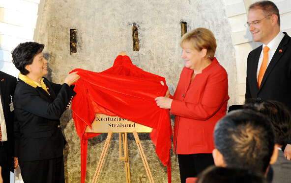 当地时间8月30日下午,德国第17家孔子学院──施特拉尔松德孔子学院隆重举行成立仪式,德国总理默克尔出席仪式并与孔子学院总部总干事、国家汉办主任许琳为该孔院揭幕。这是默克尔本人以及德国现任总理首次为孔子学院揭幕。