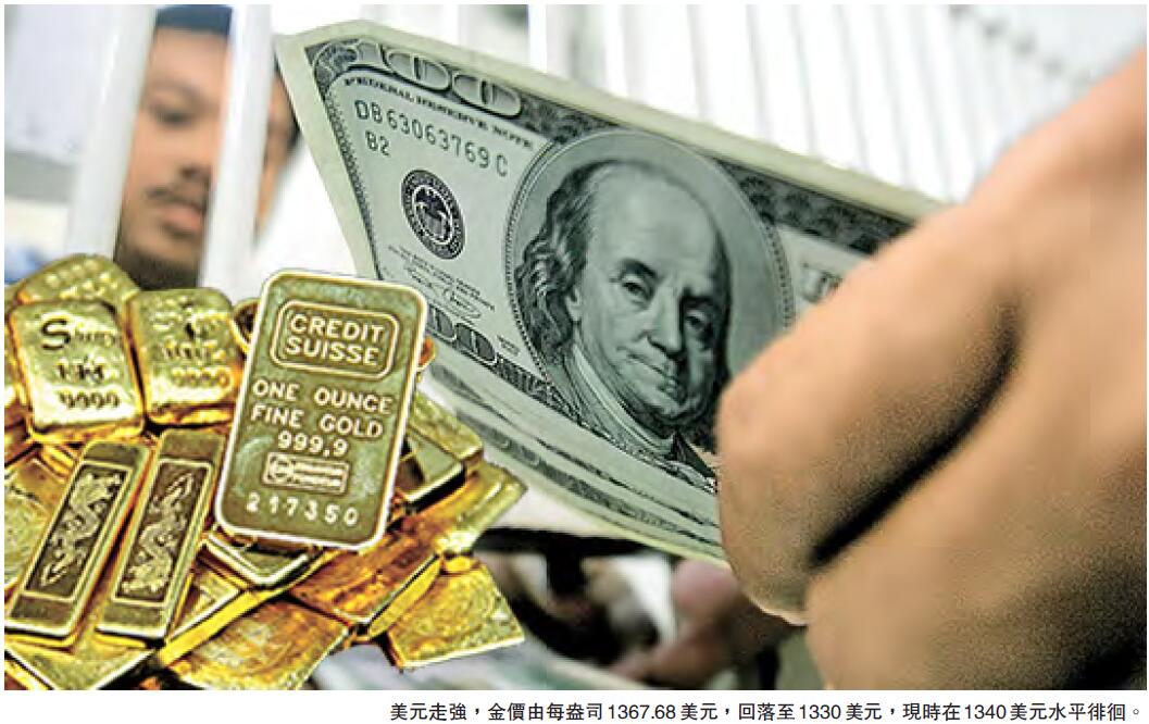前段日子,澳洲央行、英国央行先後宣布降息。黄金等贵金属价格一度上攀,然而,8月5日美国非农数据,与优於预期的美国就业报告击碎了黄金价进一步攀升,金价飞流直下。财经分析人士认为,随全球宽松潮来临,不仅增添美国联邦储备理事会(Fed)年底前升息的可能,并激励美元走强,导致金价由每盎司1367.68美元,回落至1330美元,现时在1340美元水平徘徊。而未来市况,由於黄金需求强劲,金价难跌。