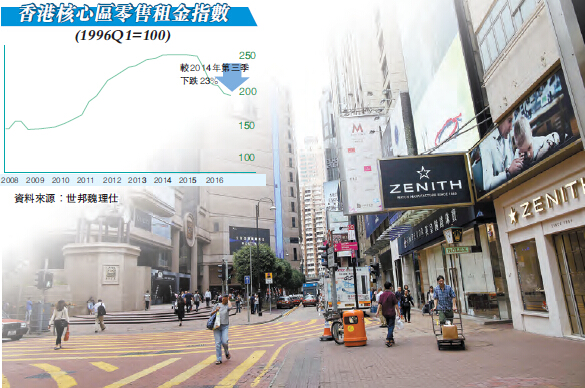 一線舖租較高峰跌23%