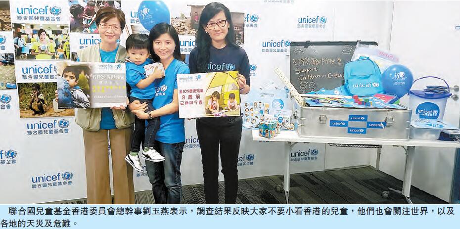 联合国儿童基金香港委员会总干事刘玉燕表示,是次的调查结果反映大家不要小看香港的儿童,他们也会关注世界,以及各地发生的天灾及危难。她又说,今年联合国儿童基金香港委员会踏入30周年,希望能透过「布施行动」,推动世界公民意识,也让下一代明白每一名儿童也有健康生存及成长的权利,呼吁有更多人支持灾难中的儿童。
