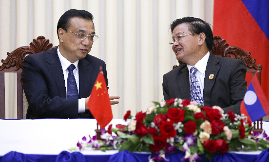 李克强同老挝总理通伦共同见证两国合作文件的签署。 当地时间9月8日晚,中国国务院总理李克强在万象总理府同老挝总理通伦举行会谈。会谈后,两国领导人见证了双边产能合作、经贸投资、经济技术、教育等领域20个合作文件的签署。