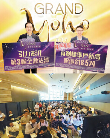 另一焦点盘,新地(016)旗下元朗「GrandYOHO」同样热潮未散,昨日开售的第三轮218伙标准户,亦全数沽清,同时售出5伙特色户,包括9座46楼A室,成交尺价约18574元,创下项目标准户尺价新高。