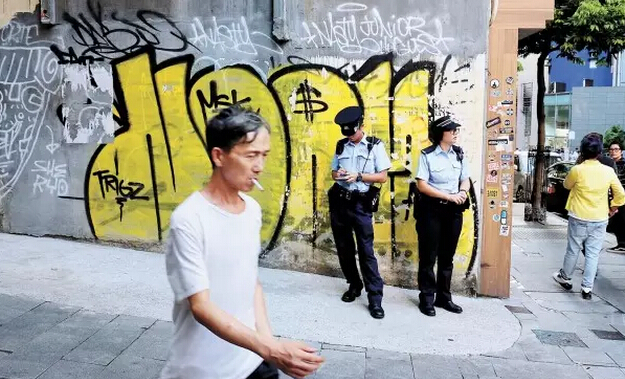在各有各忙的这一刻,行人、巡警,谁也无暇看那街头涂鸦。
